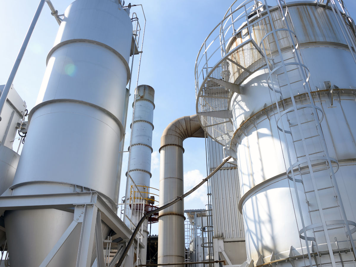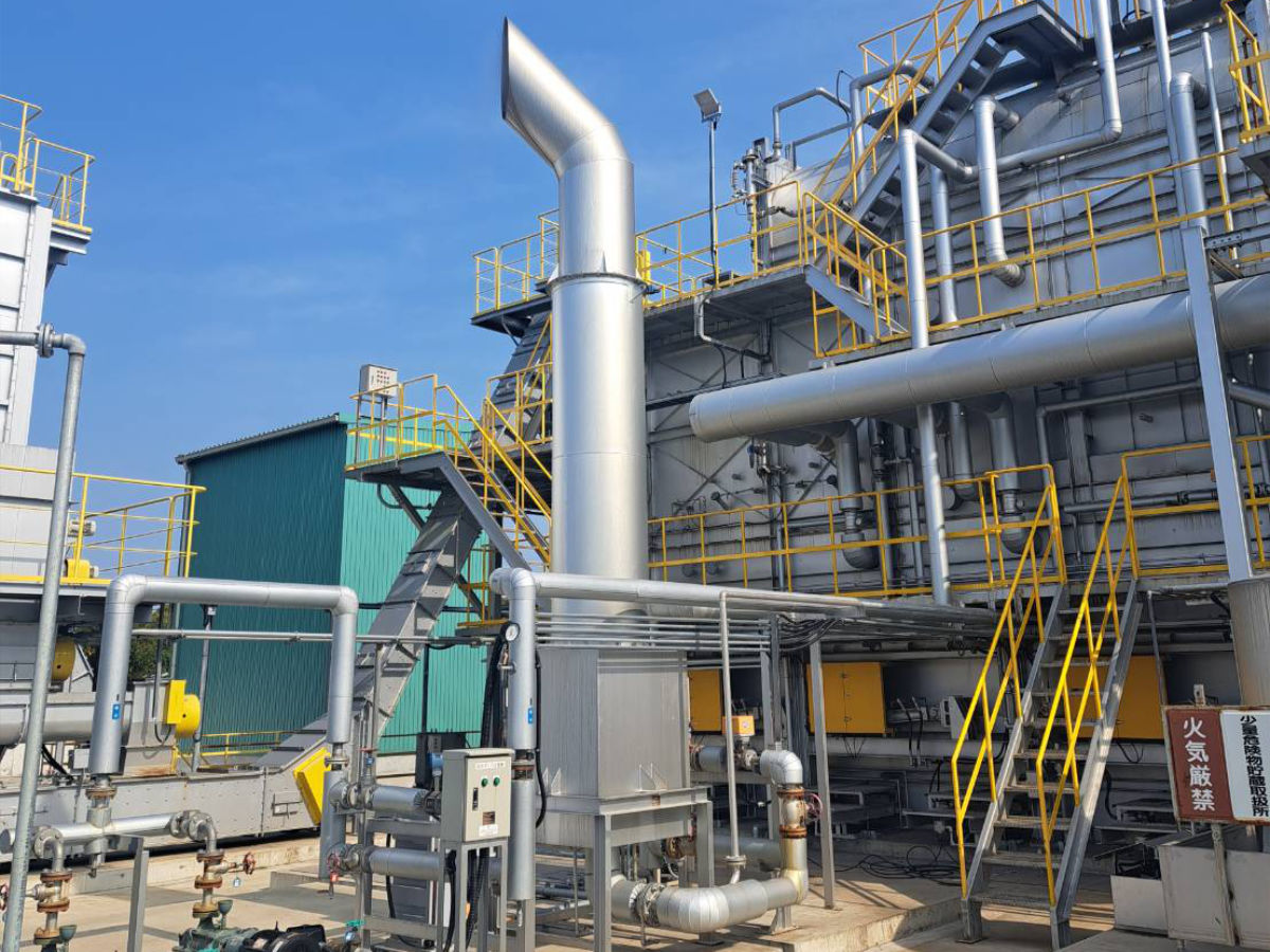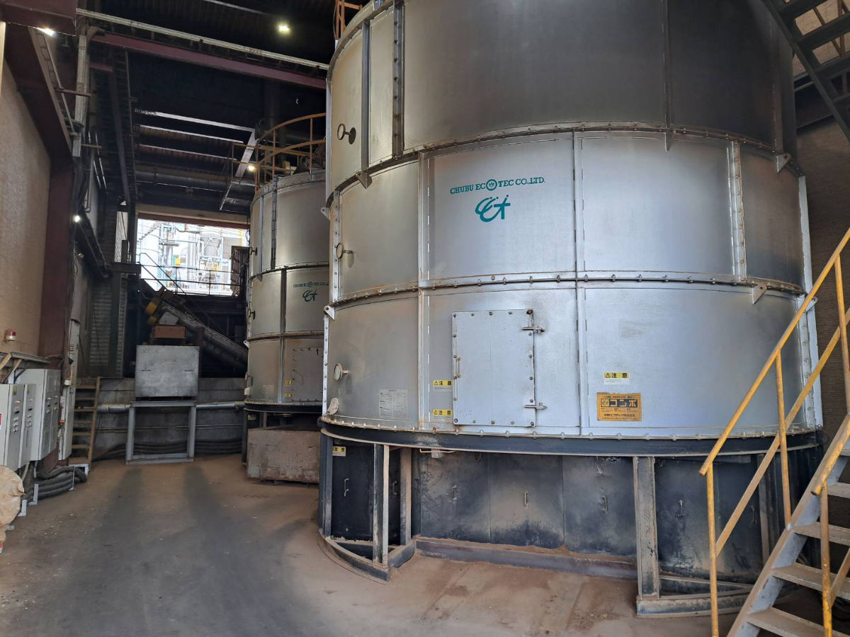 乾溜ガス化方式炉で得た熱を利用し化製部門において蒸気として利用しております。