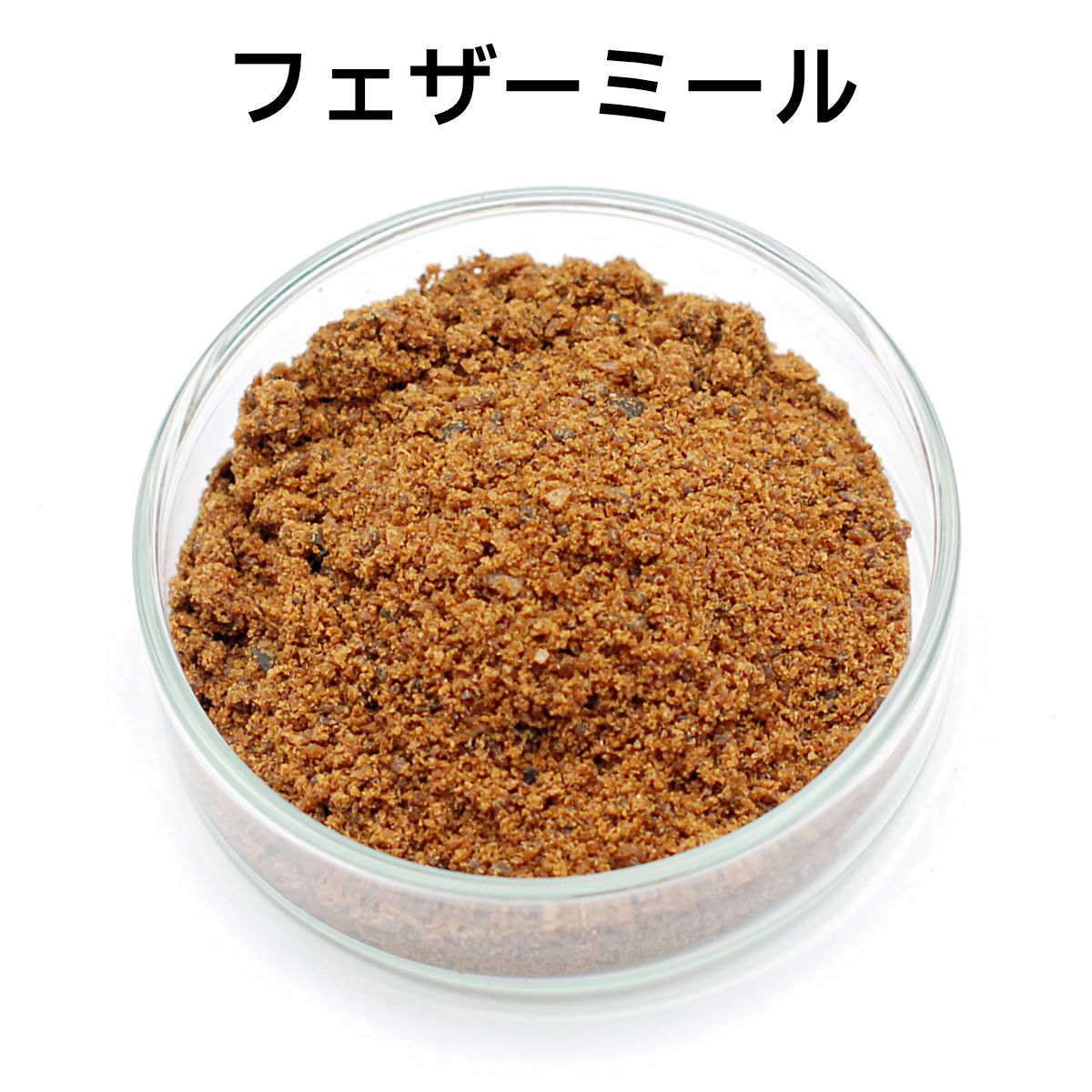 - チキンミール、ポークミール、フェザーミール、魚粉、血粉
